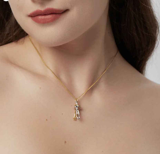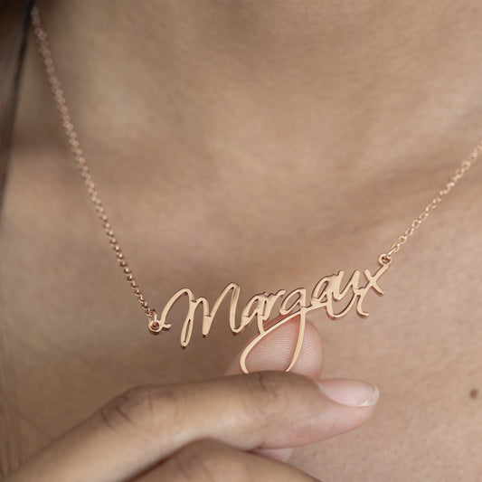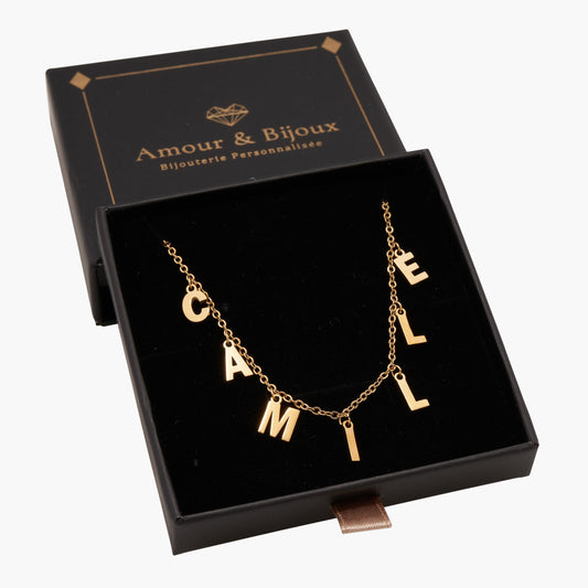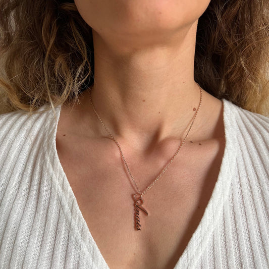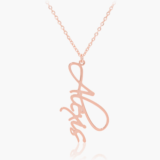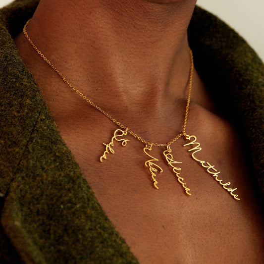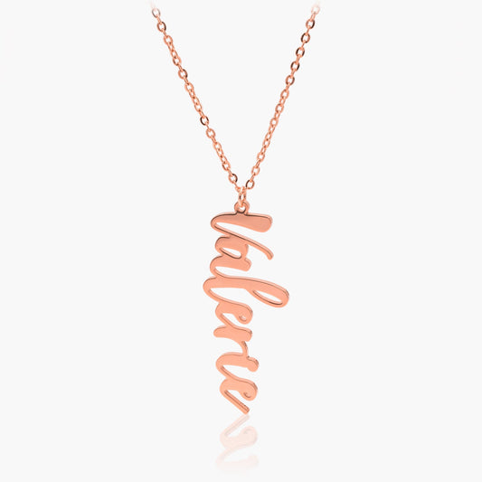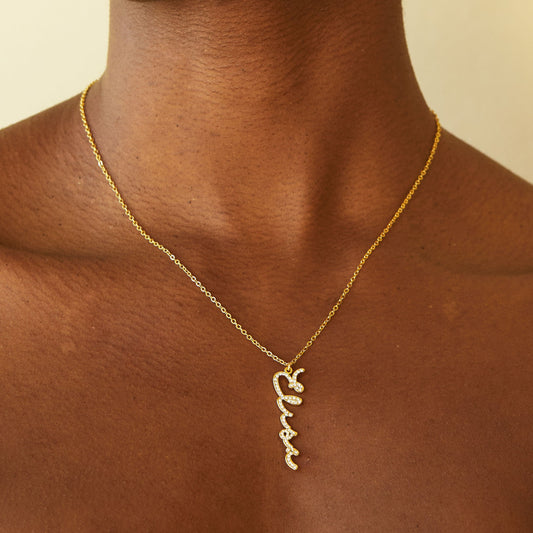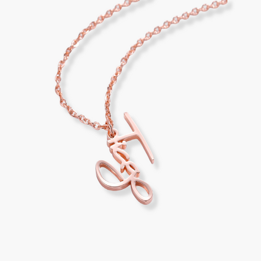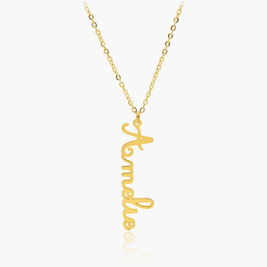 Personalized Vertical Name Necklace 14k Yellow Gold and Silver