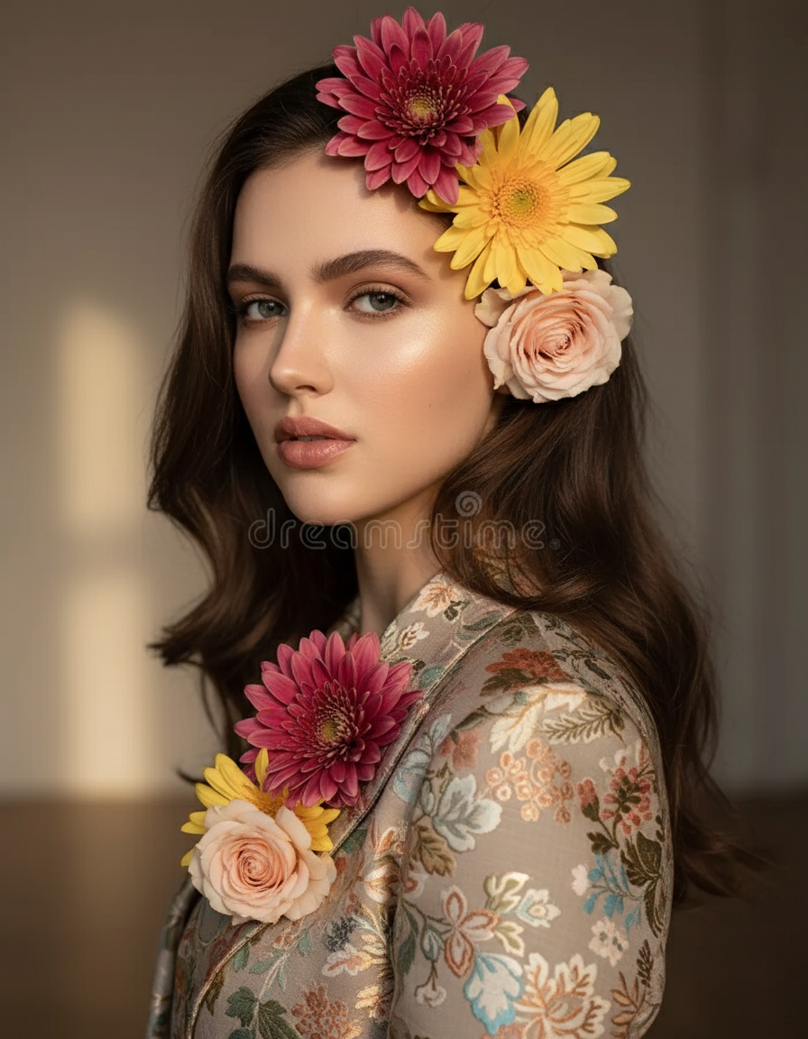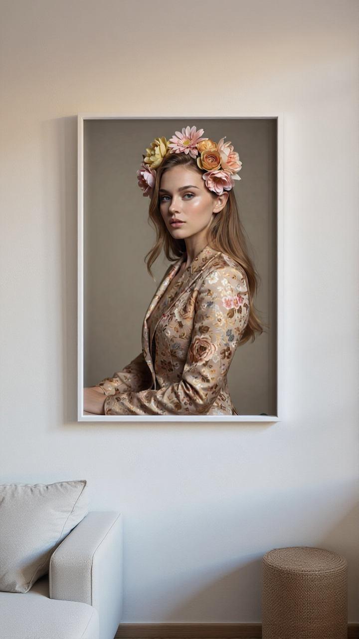 This canvas is not just an image: it is an artistic expression of your personality , where every detail of your face blends harmoniously with the flowers to create a vibrant and unique portrait.
